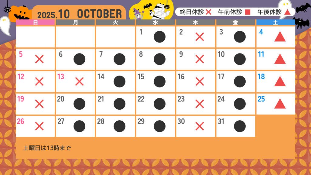 10月 診療カレンダー